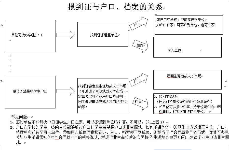 (2)合同就业:单位不解决户口则不能按单位派遣,如单位同意回生源地或签约人才市场(需书面证明),可办理回生源地或去人才市场的派遣手续。