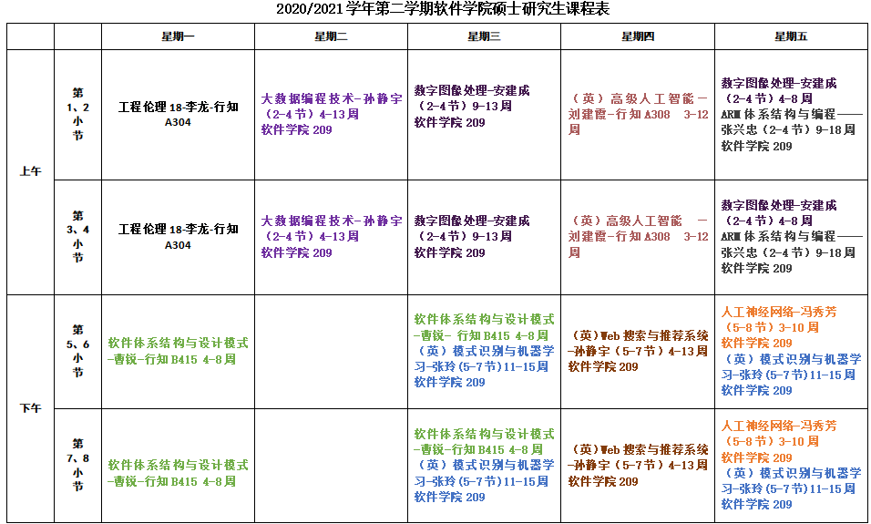 2020/2021学年第二学期太阳成集团tyc122ccvip硕士研究生课程表