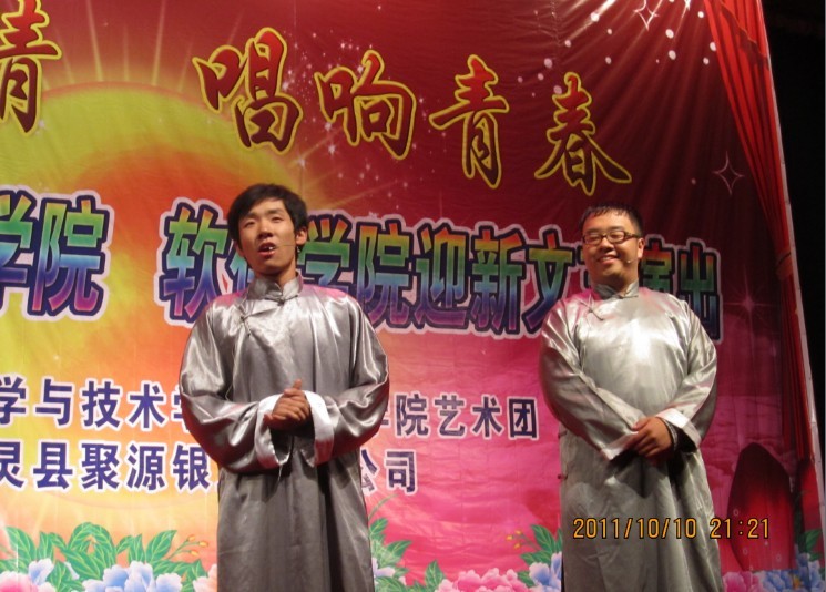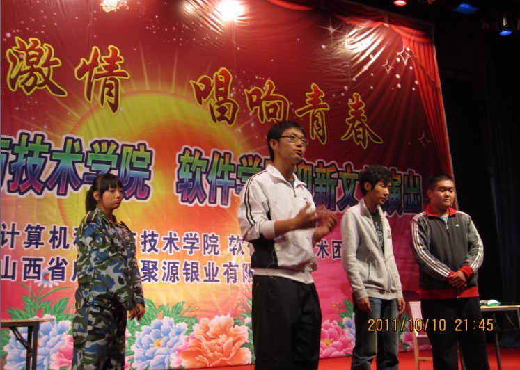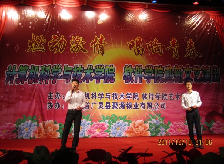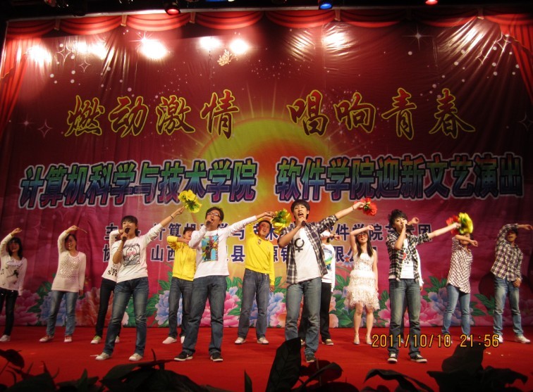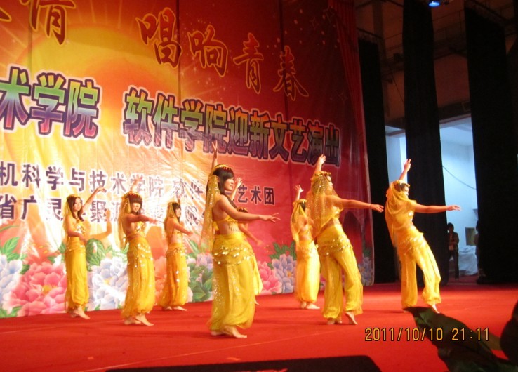 随后以“燃烧激情,唱响青春”为主题的迎新文艺演出在一曲“天高地厚”的歌声中开场,充满异域风情的肚皮舞表演美轮美奂、精妙十足,魔术表演充满惊奇,相声《招新》幽默,街舞《逆转》激情四射,小品《招新风波》引起笑声不断,深情动人的歌曲联唱表达了同学们热情上进的情怀。晚会在一片欢呼声和掌声中落下帷幕。