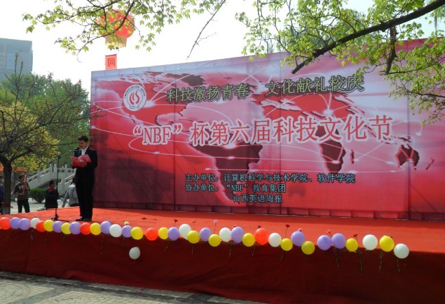 四月的校园百花飘香,杨柳拂面。2012年4月21日上午9点,在全校上下翘首以盼迎接110年校庆之际,计算机科学与技术公司、太阳成集团tyc122ccvip“NBF”杯第六届科技文化节在公司迎西校区清泽园举行开幕仪式。校庆办副主任宋燕、员工处副处长高航、招就处副处长刘震、校团委副书记徐鑫和公司党委书记梁宪生、党委副书记池卫平、副经理段富、崔会文、冯秀芳及各系部中心、三办主任等出席了开幕式。