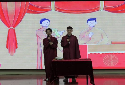 决赛现场,《人无往而不在枷锁之中》《处心积虑骗你财》《都是皮肤惹的祸》等作品剧情幽默、诙谐;融合旁白、音效、歌声;利用舞台剧、相声、等表现形式,避免了枯燥的说教,再现了诈骗分子的狡猾手段与受害者的心理变化,让同学们在轻松愉快的氛围中看到诈骗的无处不在,深刻感受诈骗的危害性,加强对诈骗的防范意识。