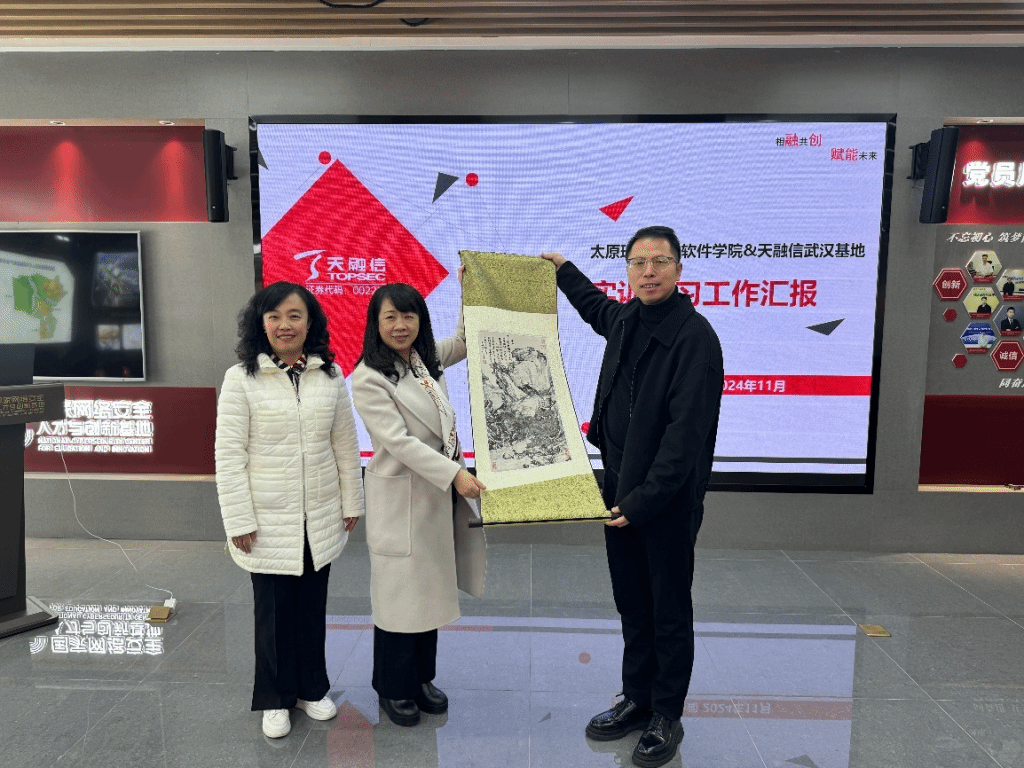 座谈交流环节中,天融信教育的温晓飞、季珈萱与郝鸿杰分别对公司及基地情况、员工教学进度、员工管理工作、就业工作开展等方向进行了详细介绍。宋燕对天融信实训实习工作表示高度认可。随后,双方就员工学习情况和就业等方面展开了热烈的讨论,提出了许多建设性的意见和建议,为公司和企业在人才培养与运营管理等多方面的持续改进提供了有益的参考。