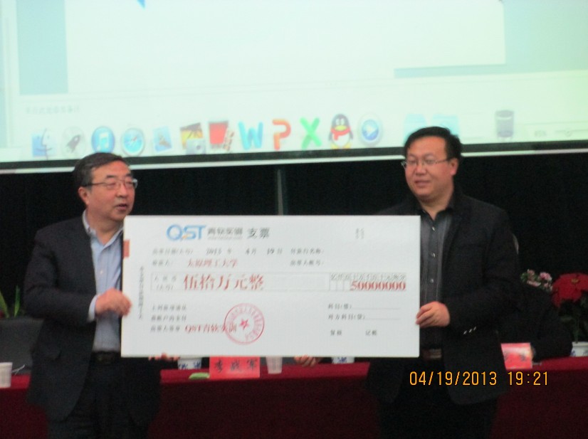 会上,杨鹏总经理介绍了奖学金的设立目的、金额、发放范围以及评选标准。与会领导现场举行了 “青软实训就业创业奖学金”支票转赠仪式。2012级员工代表王光宇同学在会上作了表态发言。