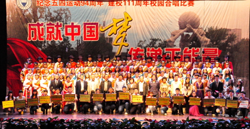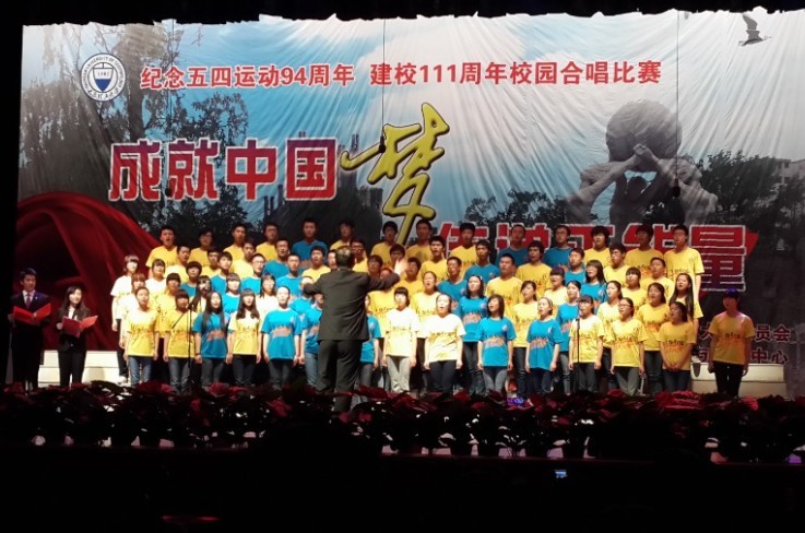 5月6日晚,公司纪念五四运动94周年、建校111周年“成就中国梦 传递正能量”校园合唱比赛在虎峪校区同泽会堂举行。公司党委书记吴俊清,董事长吕明,公司党委副书记安川金、张惠元,副董事长梁丽萍应邀出席。各党政职能部门、各公司负责人与全校近千名师生一同观看了比赛。