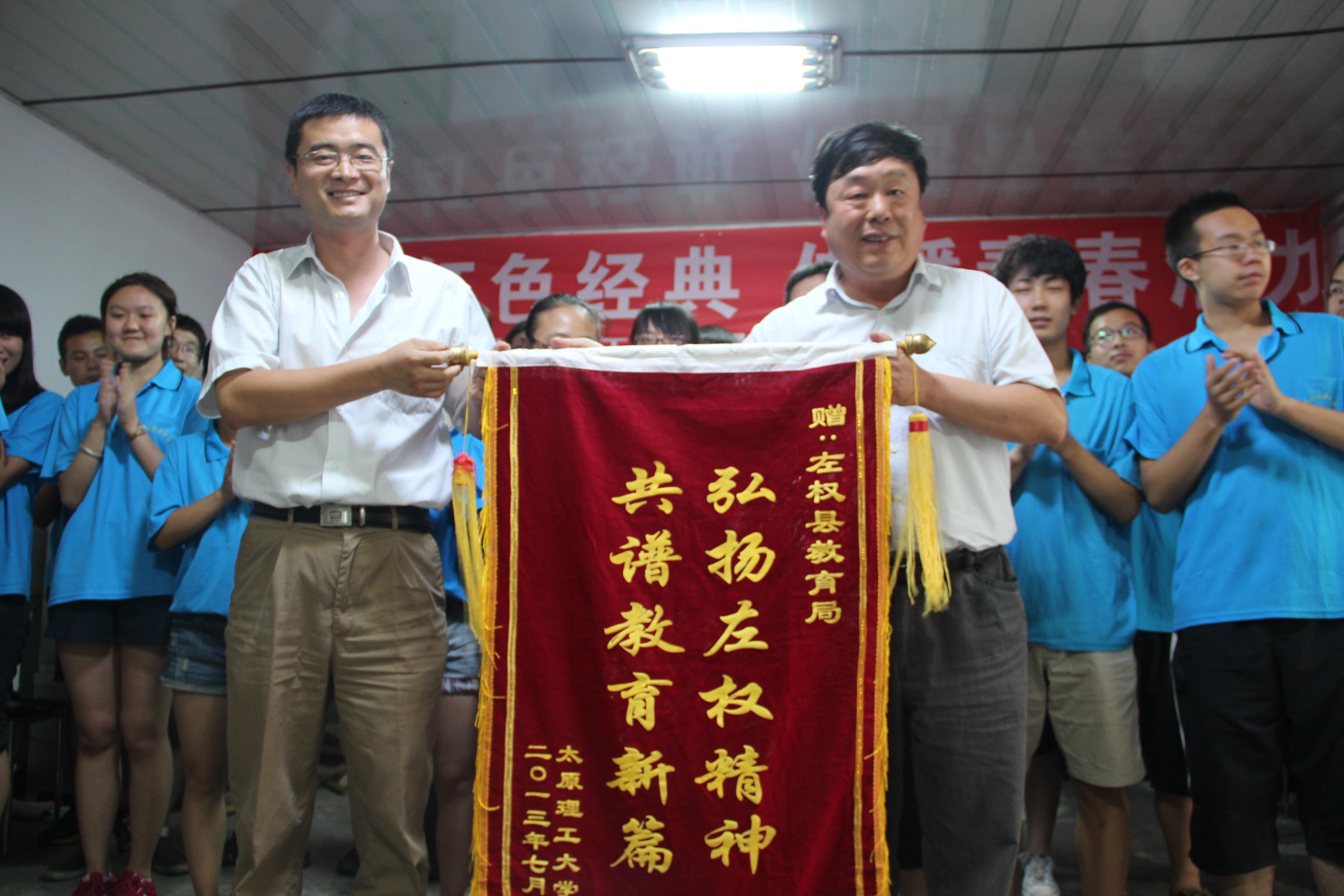 2013年7月5日,太阳成集团tyc计算机公司与太阳成集团tyc122ccvip在院团委老师领导下召开了2013年“三下乡”暑期社会实践活动启动仪式,仪式上确认了此次暑期社会实践活动组队形式与参加成员,其中左权实践队成为一大亮点。无论在活动安排方面还是主题规划方面,左权实践队的行程安排都与红色老区紧密联系。走入红色左权,与老区人民同乐,是左权队此行的实践理念。