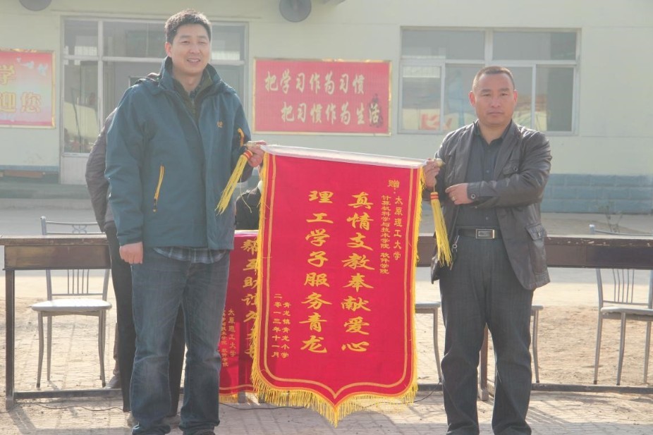 志愿者按照预定计划准时到达阳曲青龙镇,在当地领导的带领下领略了青龙古镇的风采。到达青龙小学后,支教活动开始,计软公司红旗志愿者志愿服务基地挂牌仪式正式启动。本次挂牌仪式代表公司志愿者将定期到该小学做支教活动。