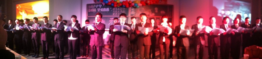 在迷途乐队激动人心的开场音乐后,梁书记代表公司全体师生给到场的全体同学做了新年寄语。梁书记在寄语中充分肯定了明向校区2013级全体师生的才华与实力,表扬了过去的三个月中,公司2013级全体同学在各种活动中勇夺佳绩,希望同学们可以在明向起航,脚踏实地,最终扬起成功的风帆,到达胜利的彼岸。最后,梁书记代表公司所有领导及老师亲切的祝愿公司所有同学新年快乐,祝愿大家在新的一年里工作顺利,学习进步。