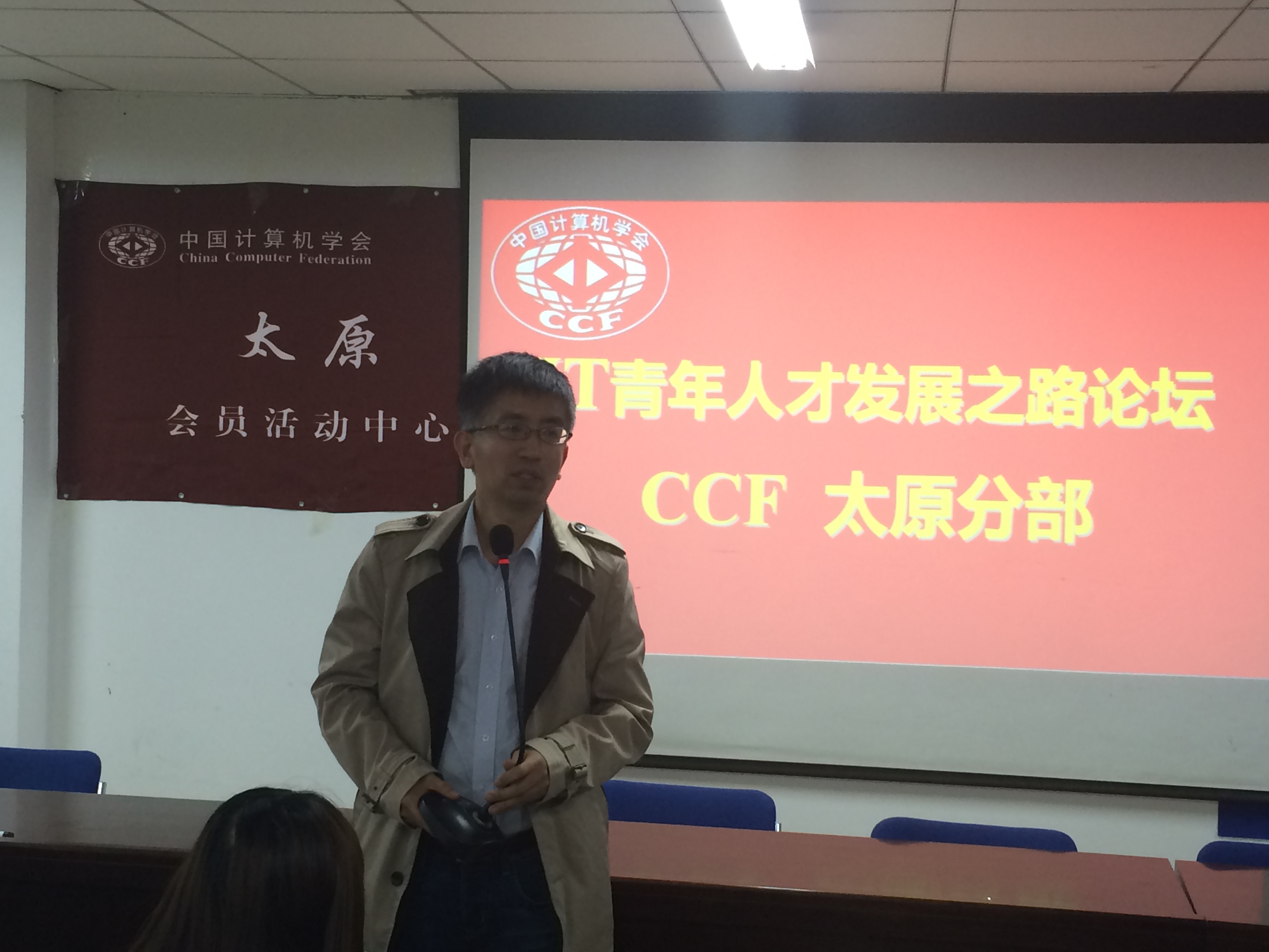 2014年4月16日,CCF 太原分部和YOCSEF太原分论坛在太阳成集团tyc计算机科学与技术公司成功举办了“IT青年人才发展之路”论坛。本次论坛由CCF YOCSEF太原分论坛候任副主席赵涓涓副教授担任执行主席。CCF太原分部副主席陈俊杰教授、CCF YOCSEF太原分论坛主席强彦副教授、太原分论坛候任主席秦品乐副教授、太原通泽重工有限公司王明宇和张杰高级工程师等100余人参加了此次论坛,共同探讨了关于“IT青年人才发展”相关问题。