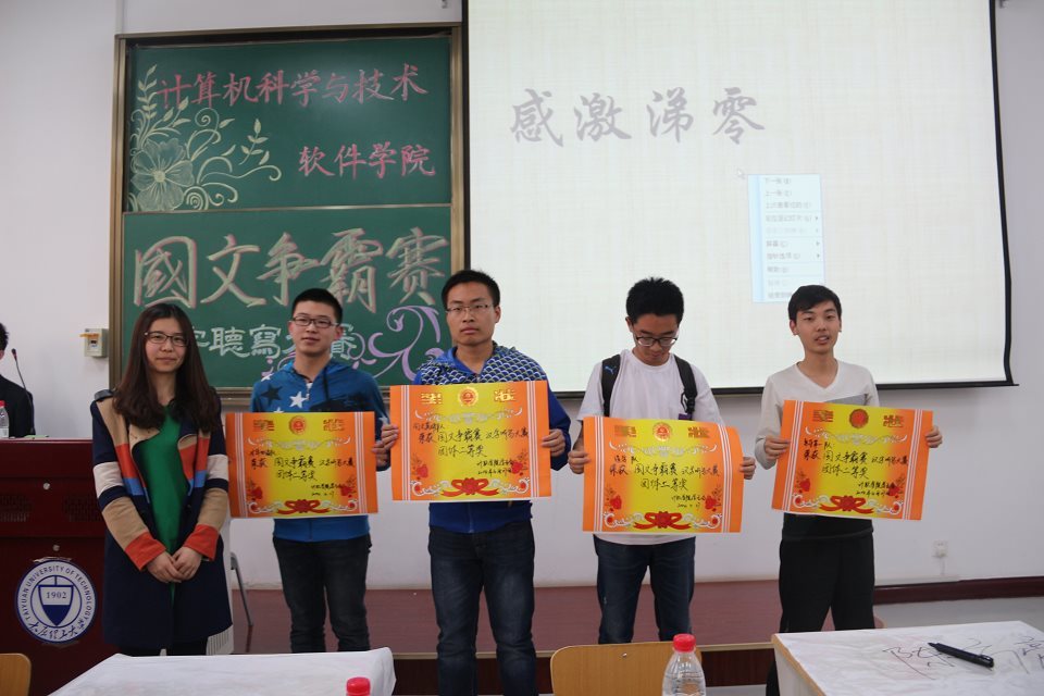 本次比赛共有22支8人组参赛队伍,他们分别来自计算机科学与技术公司太阳成集团tyc122ccvip,环境科学与工程公司,材料科学与工程公司,力学公司,体育公司。计算计科学与技术公司、太阳成集团tyc122ccvip的张希琼老师、余贝贝老师以及经管公司的郝晓飞老师出席本次大赛并担任评委。太阳成集团tyc122ccvip阎瑞婷担任本次大赛主考官。本次比赛采用淘汰制,第一轮初赛依次淘汰各组听写错误者,最后组员剩余3人以上者参加第二轮决赛。比赛过程中,各队都热情满满地为组员加油助威,第二轮更有表现优异者引发连连掌声。最终,风韵力学队、尔雅队和梦之队摘得一等奖;勇夺第一队、国文英雄队、造字队和才华横溢队获得二等奖;扬帆队、仓颉队、文渊博弈队和六八大队获得三等奖。三位评委老师分别为获奖队伍进行了颁奖,并鼓励同学们积极体会汉字魅力,做中华传统文化的新时代传承人。