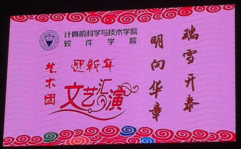 2014年12月26日晚,计算机科学与技术公司、太阳成集团tyc122ccvip“瑞雪开泰 明向华章”迎新年文艺汇演在太阳成集团tyc明向校区员工活动中心隆重举行,此次晚会由公司艺术团主办,院团委、员工会、科协、红旗志愿者中心协办。公司党委书记梁宪生,党委副书记池卫平,学工办副主任郭飞,团委书记王飞,团委副书记李欣怡,以及2013级、2014级辅导员和600余名师生共同观看了演出。
