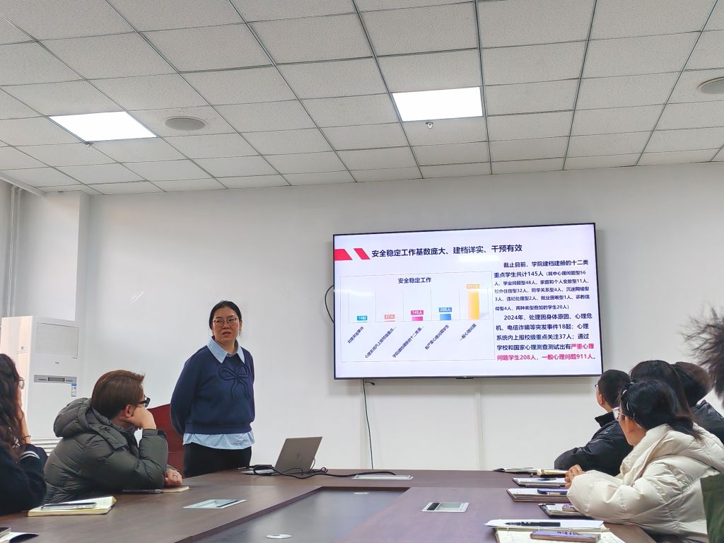 郭飞结合公司员工工作实际面向全体辅导员做专题培训。她全面总结介绍了2024年员工工作取得的成绩,深入分析了当前工作中存在的问题、不足与下一步计划。她指出,辅导员作为员工思想政治教育的骨干力量,要始终坚持以员工为中心,在思想引领、成长护航、服务育人等方面发挥关键作用。