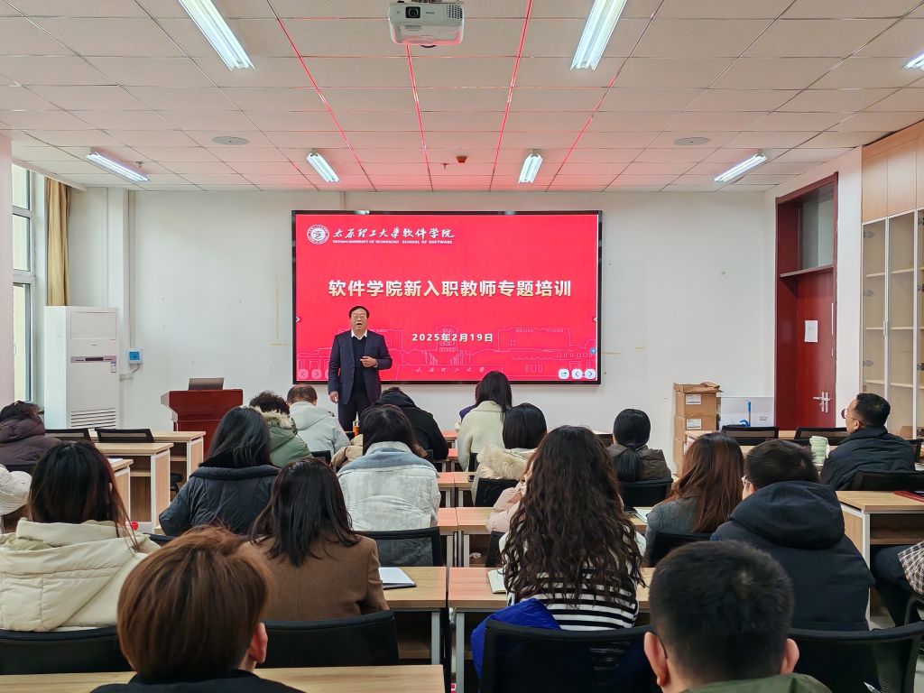 张文基首先对新入职教师表示热烈欢迎,他以《他山之石》为题,围绕“一个故事、两个案例、一段经历、一项技能”,向大家分享了自身多年的工作心得感悟,希望全体老师能够把工作当成事业去做,结合人工智能时代背景和软件工程专业特色,勤于思考、善于学习,及时总结、学会反思,用心、用爱、用行动做好本职工作。