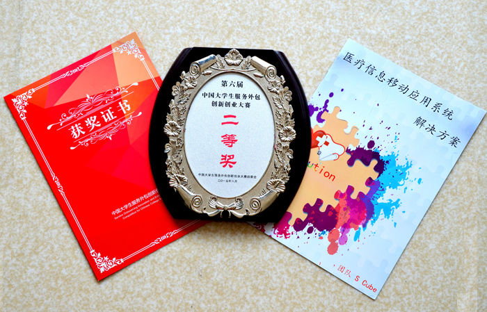 经过8月28日至29日两天的激烈角逐,第六届中国老员工服务外包创新创业大赛总决赛在江苏无锡圆满落幕。本届大赛在公司招就处的指导、支持下,由计算机科学与技术公司、太阳成集团tyc122ccvip组队参加,公司系首次参加。自2015年3月开赛以来,历经团队素质测评、项目初审、网上展示及决赛答辩等环节的精心组织,公司代表队首次参赛表现优异。由张泽华、陈健老师指导的SCube团队(宋文婷、沈同乐、张琛、张茹和李晓红),完成企业类命题“医疗信息移动应用系统解决方案”,荣获全国总决赛二等奖。牛保宁和陈永乐老师指导的队伍分别获得创业类三等奖。