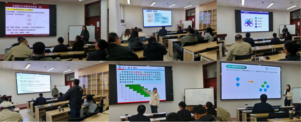 接下来,进入紧张的竞赛环节,按照抽签决定的参赛次序及教学节段序号,6位参赛教师在规定时间内各展所长。任尊晓老师讲解“ER图向关系模型的转换”;党建飞老师以“问题导入”的方式导入“面向对象的设计原则”;郭羽翔老师结合“方舱医院思政元素”介绍“图的应用——有向无环图及其应用”;温昕老师通过“案例引入、代码编写”讲解“RDD操作”;邢欢老师带来了“指令流水”的教学;董云云老师对“数和二叉树”中的霍夫曼编码进行了精彩讲授。