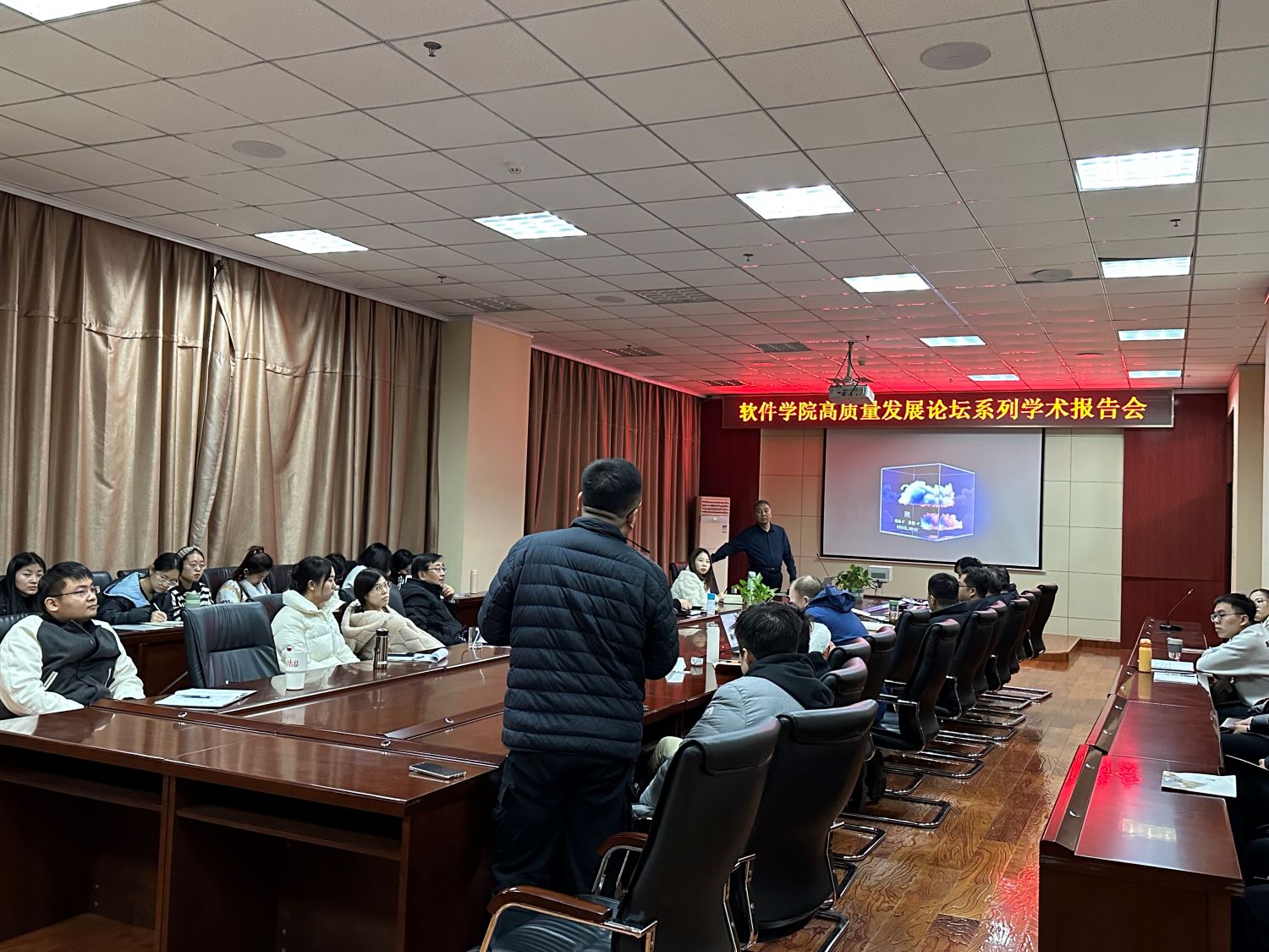 11月14日,太阳成集团tyc122ccvip高质量发展论坛系列学术报告会第10讲在太阳成集团tyc122ccvip一层会议室举行。本期邀请国家高层次领军人才,全球高被引科学家,国家优秀青年基金获得者,教育部新世纪人才,山西大学科学技术处处长钱宇华教授作专题报告,报告会由太阳成集团tyc122ccvip经理赵涓涓教授主持,软件工程系全体教师、部分研究生参加。