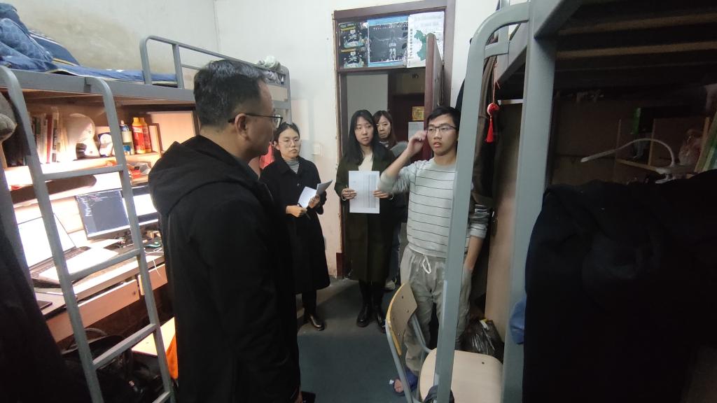 20日,公司领导班子分批带队深入走访员工宿舍楼、公司各办公室、实验室,各辅导员及员工骨干进行全覆盖式宿舍检查、互查,着重检查宿舍违禁用品、宿舍插线、宿舍卫生等安全问题,并将检查结果及时反馈各辅导员各班级进行整改。