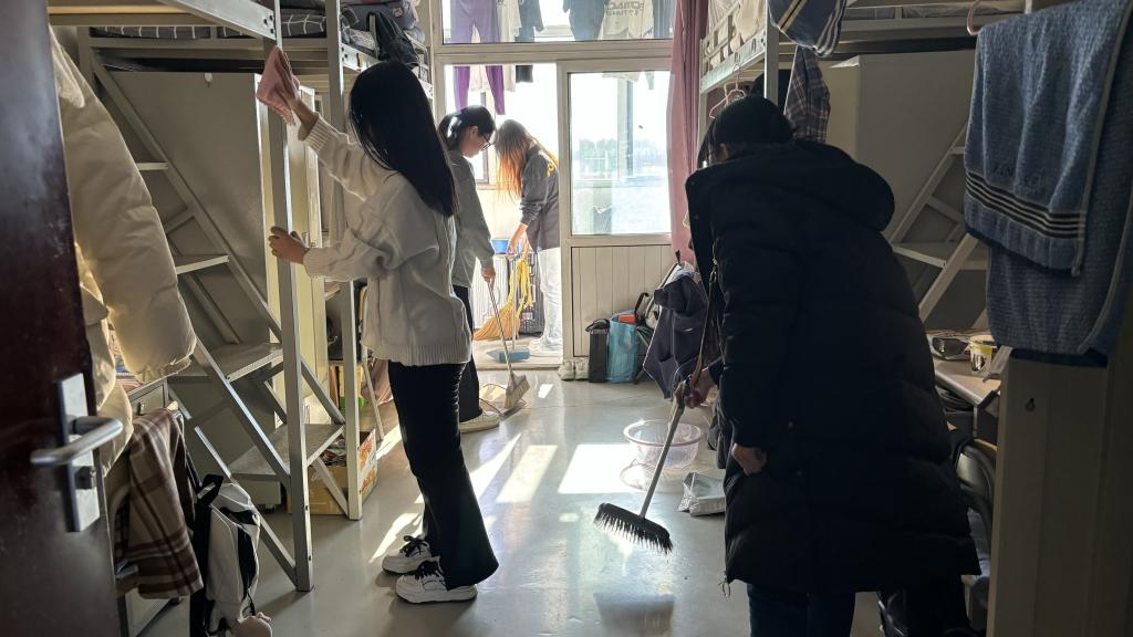 公司辅导员第一时间面向班级传达会议精神,公司在校一至三年级3000余名员工即刻行动,利用周六日进行宿舍卫生大扫除,排查宿舍安全隐患。