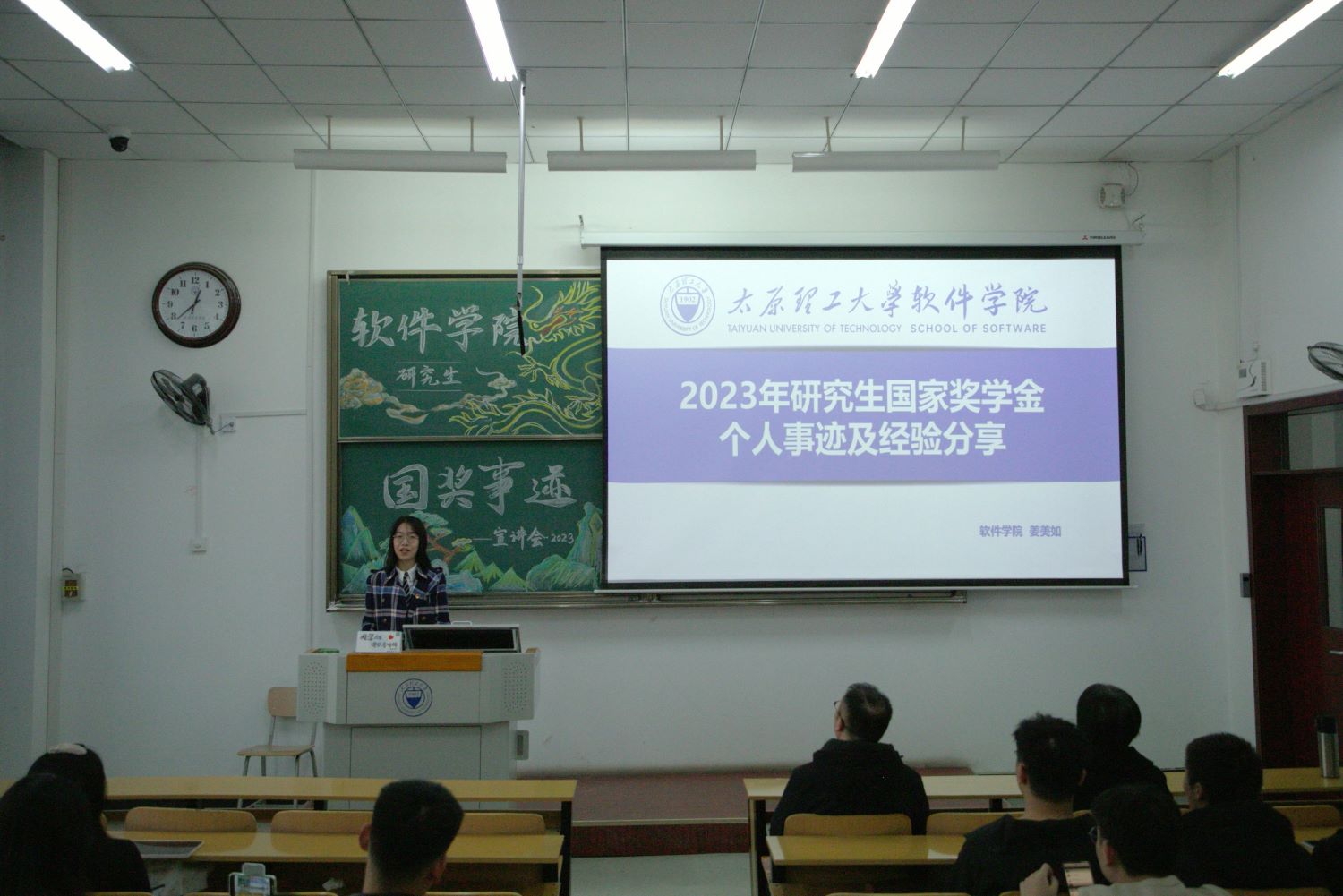 2023年11月22日中午,2023年研究生国家奖学金获得者事迹宣讲会在行远楼B121顺利召开。本次分享会由国奖获得者姜美如、王琬婷进行经验分享,太阳成集团tyc122ccvip副经理冯秀芳、曹锐,研究生导师代表、研究生辅导员出席本次会议,公司全体研究生参加。