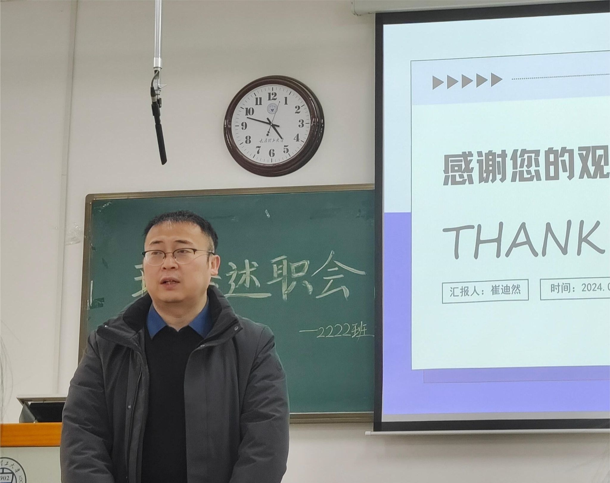 副经理曹锐是软件2222的新聘班主任,在参加了述职评议班会后,他强调,希望各班委进一步加强工作深度与广度,充分发挥班委在班级事务中的模范带头作用,助力班集体共同成长;希望全体同学树立主人翁意识,在班委的带领下齐心协力,共创积极向上、和谐友爱、班风优良的班集体。