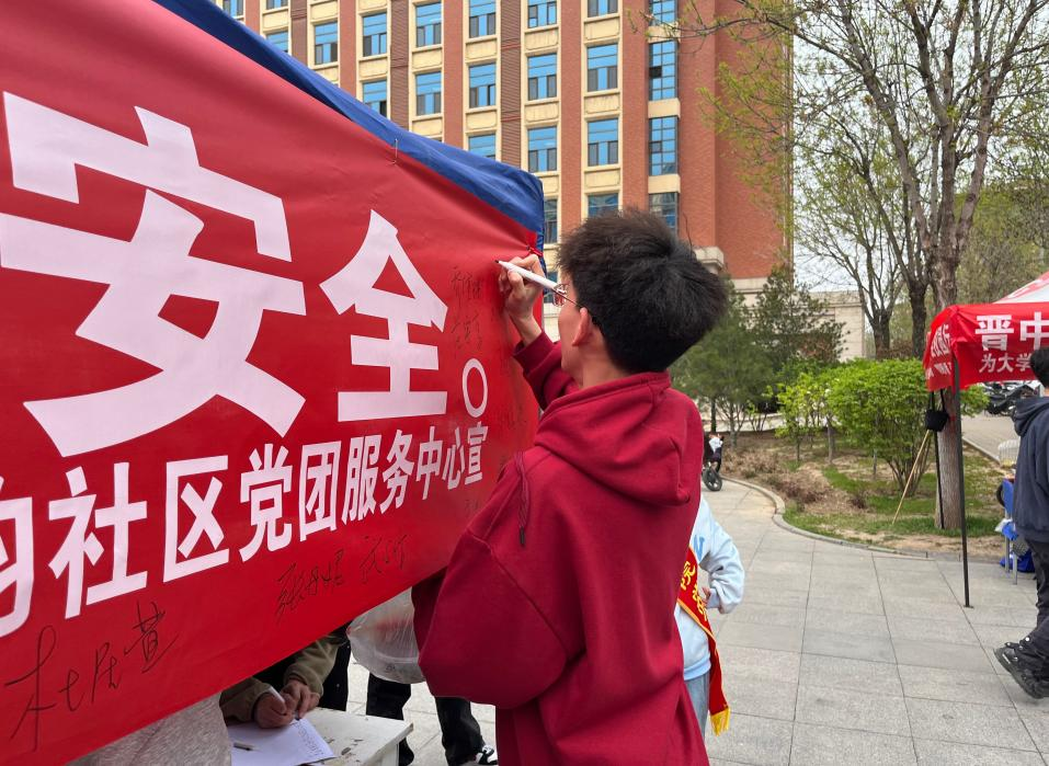 清韵社区党员志愿者们现场向同学们宣传国家安全知识,发放国家安全宣传资料,帮助同学们正确认识总体国家安全观及公民在维护国家安全中的权利。现场气氛热烈,社区师生积极回应,并在“积极践行总体国家安全观,关心维护国家安全”横幅上签字,同学们纷纷表示将在以后的学习生活中牢固树立总体国家安全观,使关心国家安全、维护国家安全成为思想共识和行动自觉。
