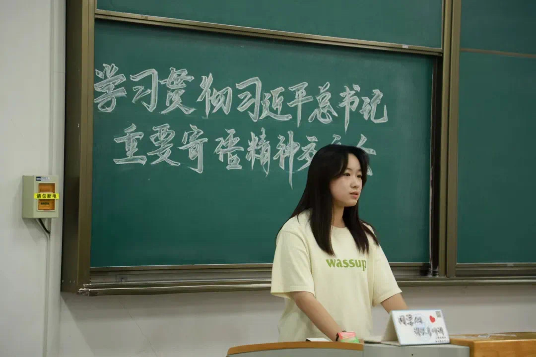 李昱霖介绍了大会主要项目后,校青马工程高君宇班刘姝锐同学与大家开展了“青春为中国式现代化挺膺担当”的主题分享,用饱满的热情、激扬的文字、生动的案例陈述了在党组织的领导下,青年为国家和民族的繁荣富强做出的巨大贡献。视频中生动直观的呈现让大家体会到五四精神是中国式现代化进程中的重要精神财富,它不仅推动了社会变革,而且对中国社会和文化发展产生了深远的影响。