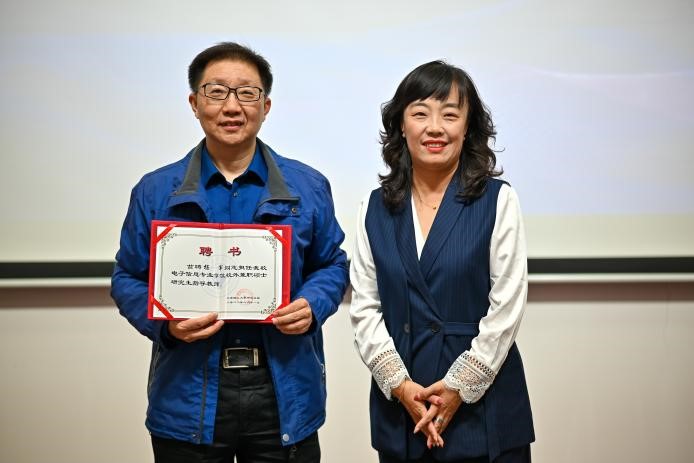 在本次报告会上,由赵涓涓经理为杨军老师颁发聘书,邀请杨军老师担任公司电子信息专业学位校外兼职硕士研究生指导教师。