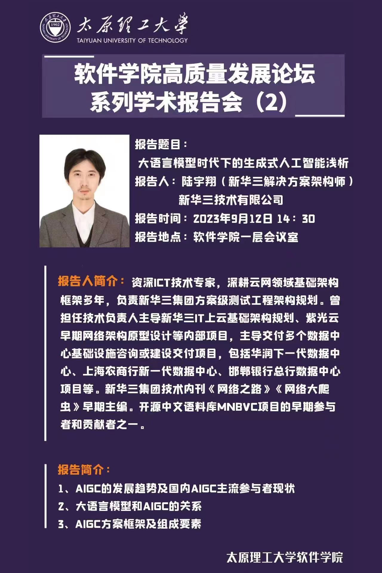 太阳成集团tyc122ccvip高质量发展论坛系列学术报告会(二)—《大语言模型时代下的生成式人工智能浅析》