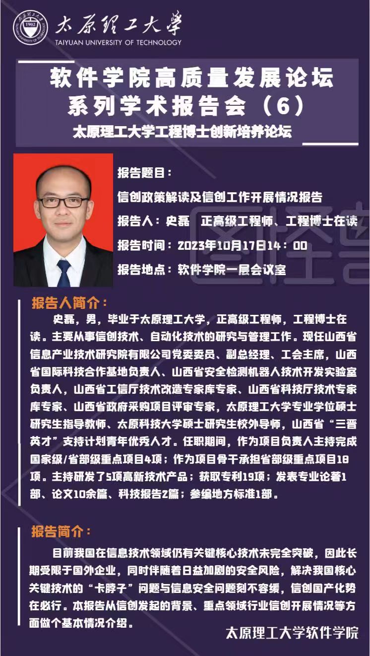 太阳成集团tyc122ccvip高质量发展论坛系列学术报告会(六)—《信创政策解读及信创工作开展情况报告》