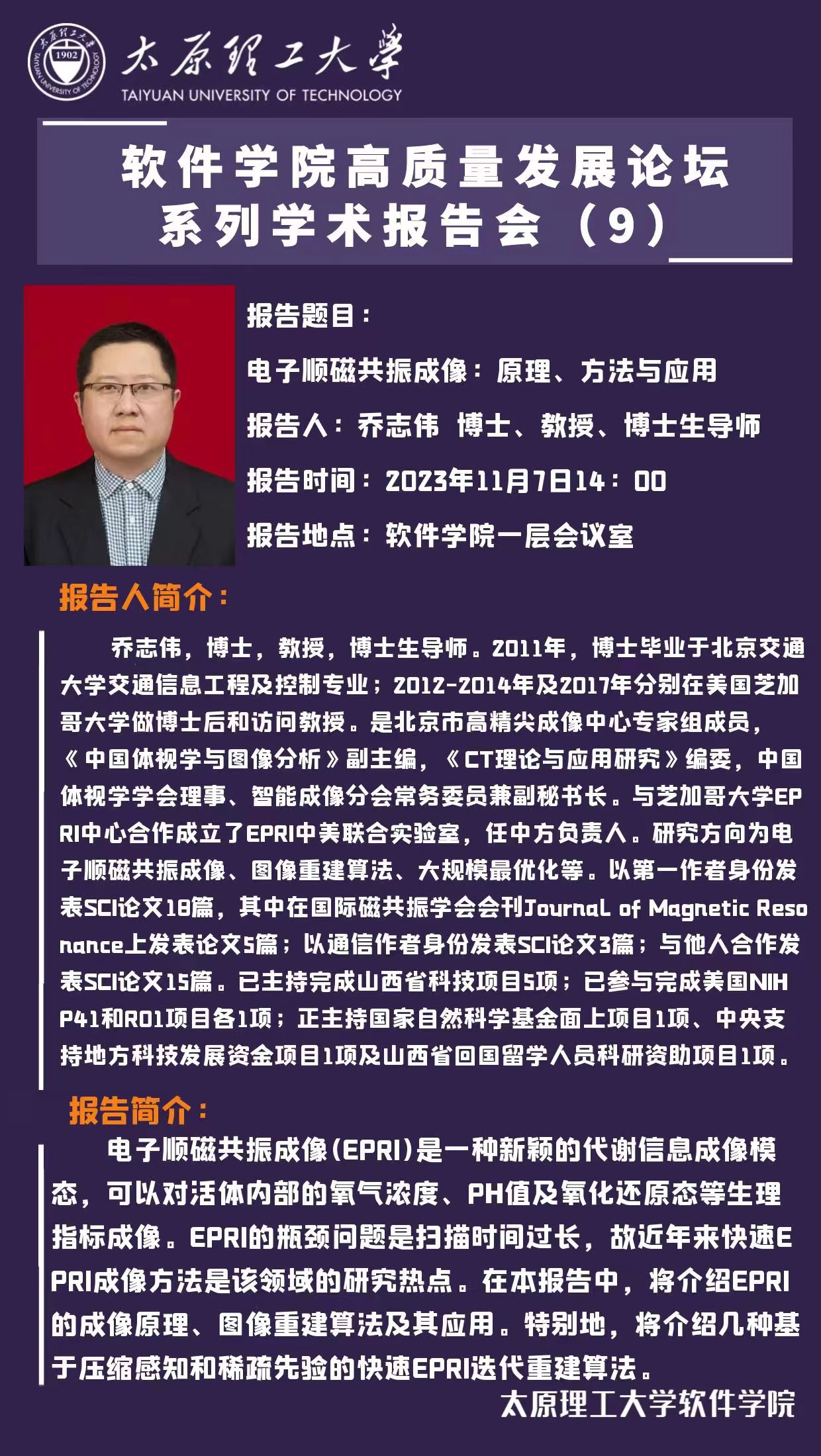 太阳成集团tyc122ccvip高质量发展论坛系列学术报告会(九)—《电子顺磁共振成像:原理、方法与应用》