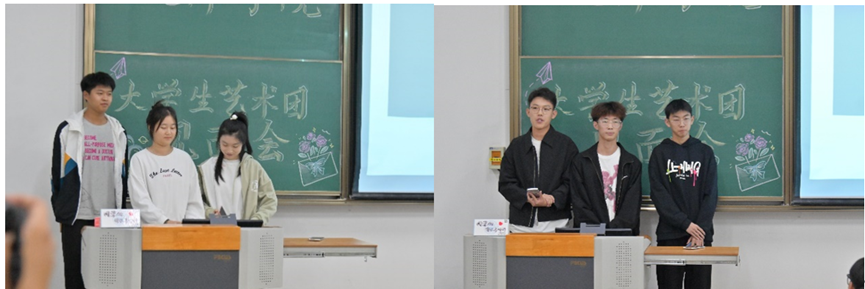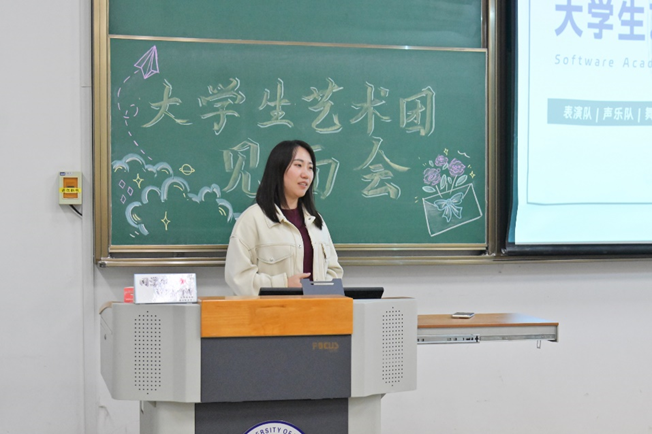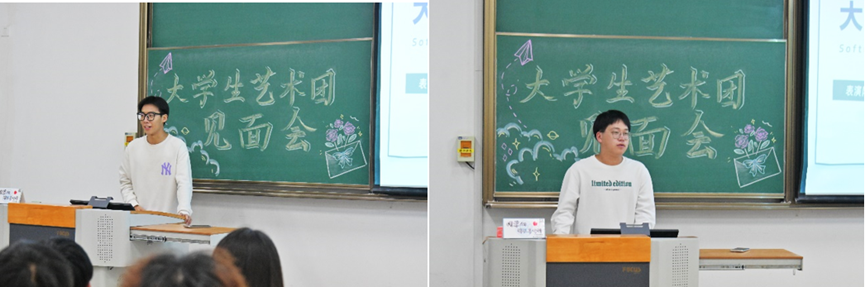 紧接着,表演队、声乐队、舞蹈队、主持队、综合事务部的各队长部长相继上台自我介绍,在队长部长发言后,各队部的队员部员也都积极地分享加入艺术团大家庭的感悟。“感受到了归属感”、“一份沉甸甸的责任感”、“非常温暖友爱”、“希望艺术团大家庭发展地越来越好”……这是大家给予艺术团的标签,朴实的话语、真实的感受展现了艺术团全体新干事的心声。