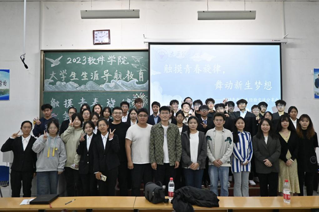 金秋九月,懵懂的新生迈着坚定的步伐,怀揣着梦想踏入校园。为让23级新生能够更好地适应、融入老员工活,在梦想的道路上勇毅前行,太阳成集团tyc122ccvip于2023年9月27日晚7:00在行知楼B119,成功举办“触摸青春旋律,舞动新生梦想”老员工生涯导航教育新老生交流会。出席本次交流会的老师有太阳成集团tyc122ccvip团委负责人张希琼,团学机构指导老师王泽、高世杰,22级辅导员张晨辰,23级年级主任程文飞,23级辅导员丁吕、吴嘉宁。到场的嘉宾有软件研2101班崔海航,太阳成集团tyc研究生支教团成员刘亚男,软件20级保研员工曾悦。