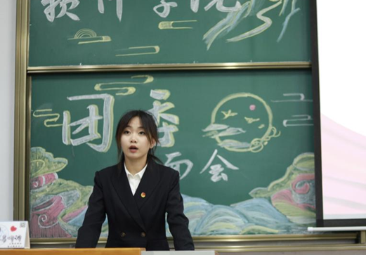 团委负责人张希琼老师上台发言。她首先讲到:共青团凝聚起了青年奋进新时代的精神力量,同时也强调了团委工作的重要性和特殊性。而我们作为团委的一份子,要摆正心态,找准自己的定位,协调分配好工作和学习的时间,在各个领域追求卓越。最后也表达了对同学们的殷切期望。