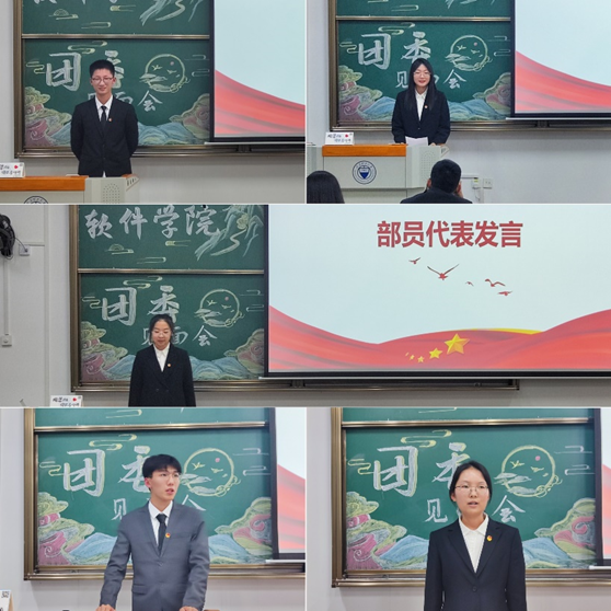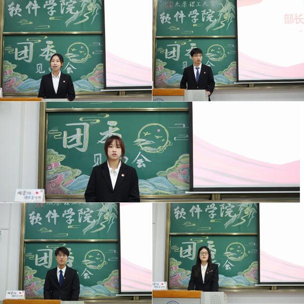 马晨婕、乔锋、赵倬菲、闫博以及王睿分别代表部门进行发言,他们对新成员的加入表示热烈的欢迎,更对新成员们提出了担当责任、不惧困难的要求,希望干事们能够在团委中得到历练,为自己的青春画上精彩的一笔。