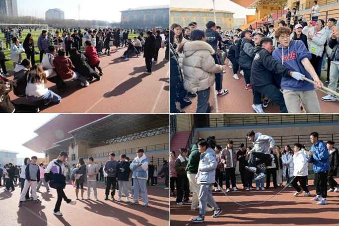 比赛过程中,欢呼声、加油声此起彼伏,拔河的同学们展现出“力拔山河气盖世”的风范,紧绷的绳索仿佛是他们团结的象征。双手紧握缰绳,双脚紧抓地面,集体的努力,众人的配合,在一阵阵呐喊与掌声中化作无穷的动力,活动现场,气氛热烈而高涨,助威声此起彼伏,在这个友谊第一,比赛第二的竞技场上,同学们尽显张扬个性,衬出靓丽青春。跳绳的同学们动作标准,节奏明快,击打地面的绳索碰撞出激情的火花。一根根跳绳,连接的是团结与友爱;一个个毽子,传递的是勇气与坚持。挥动的绳子,舞动的身体,每一次跳跃都是对自我的挑战,每一次挥动都是对胜利的渴望。踢毽子的同学们神采奕奕,身姿矫健,毽如虹飞转,人似蝶蹁跹。