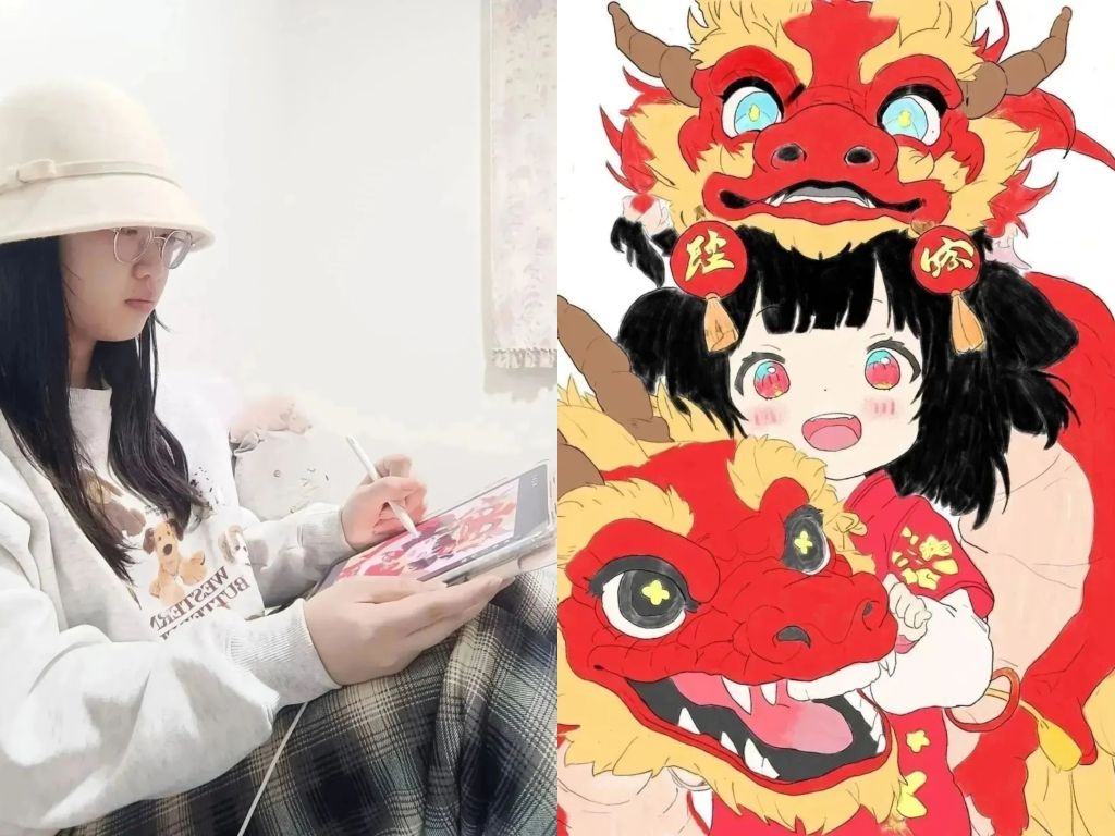 小女孩将祝福寄托于手中灯笼,醒狮的啸声响遏行云,唤起我们对未来的向往,在这片充满希望的土地上,祝愿我们携手共进、扬帆起航,以醒狮的勇气为榜样,以女孩的童真为本心,不断追求卓越,成为理想的守护者!