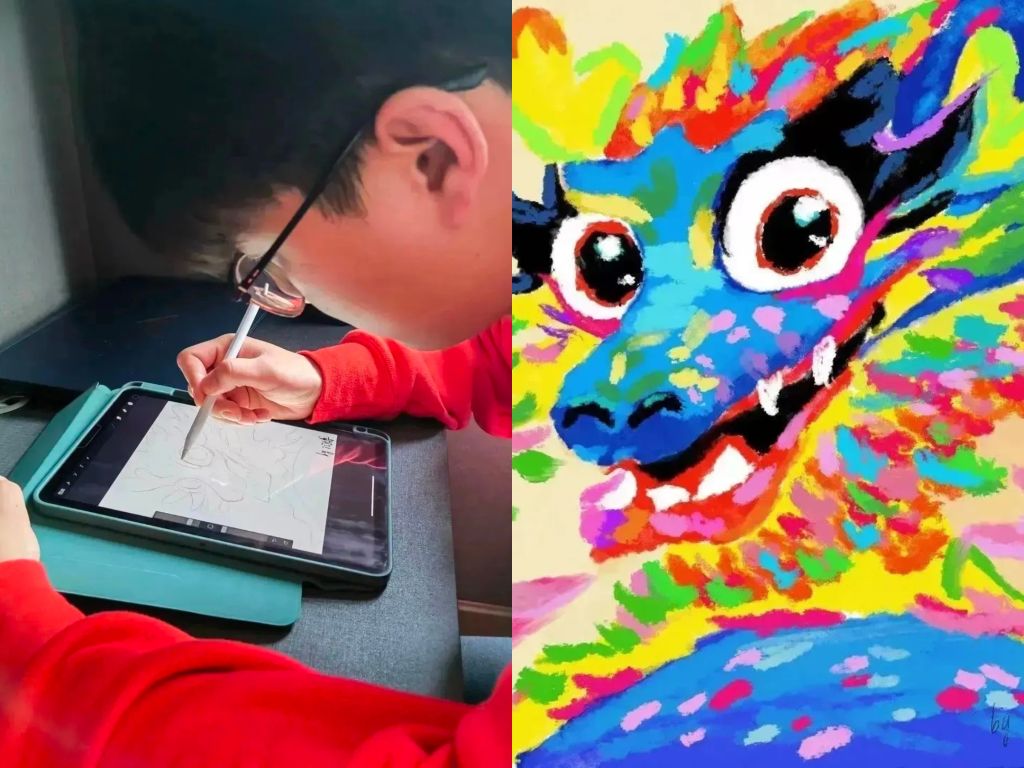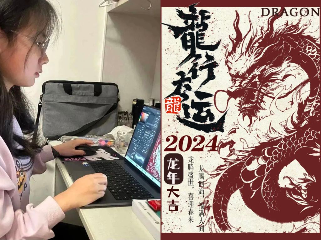 2024是龙年,在上下数千年间,龙已经渗透进了中国社会的各个方面,成为了一种文化的凝聚和积淀。龙是中华民族的象征,中华文化的象征。以龙图案为引,在整幅年画中感受中华优秀传统文化的丰富多彩,借此龙腾盛世之年,以新新之力传播“国潮”新势力,给大家带去幸福!同时这幅年画也传达了对新的一年的祝福!