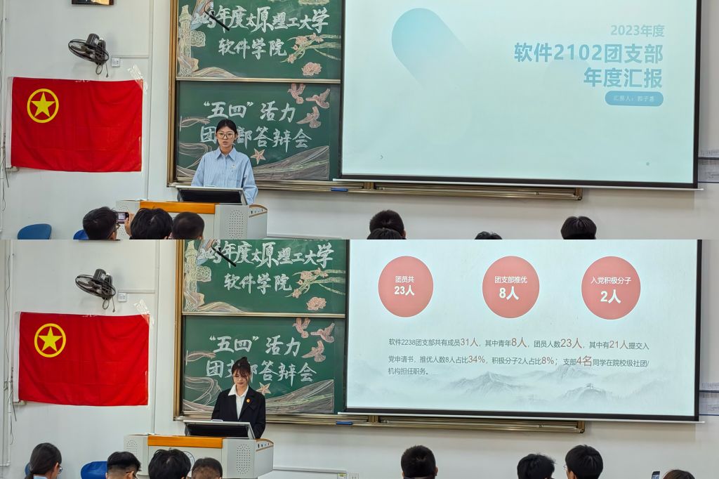 经过前期报名审核,九个团支部参与现场答辩。各团支部书记分别从青年思想政治引领和团员政治教育、履行团支部基本职责、规范化建设成效、服务团员青年工作成效、学风建设情况、团支部工作活力、存在不足及工作计划等方面进行详细介绍,充分展示了支部的引领力、凝聚力,彰显出新时代青年的活力风采。