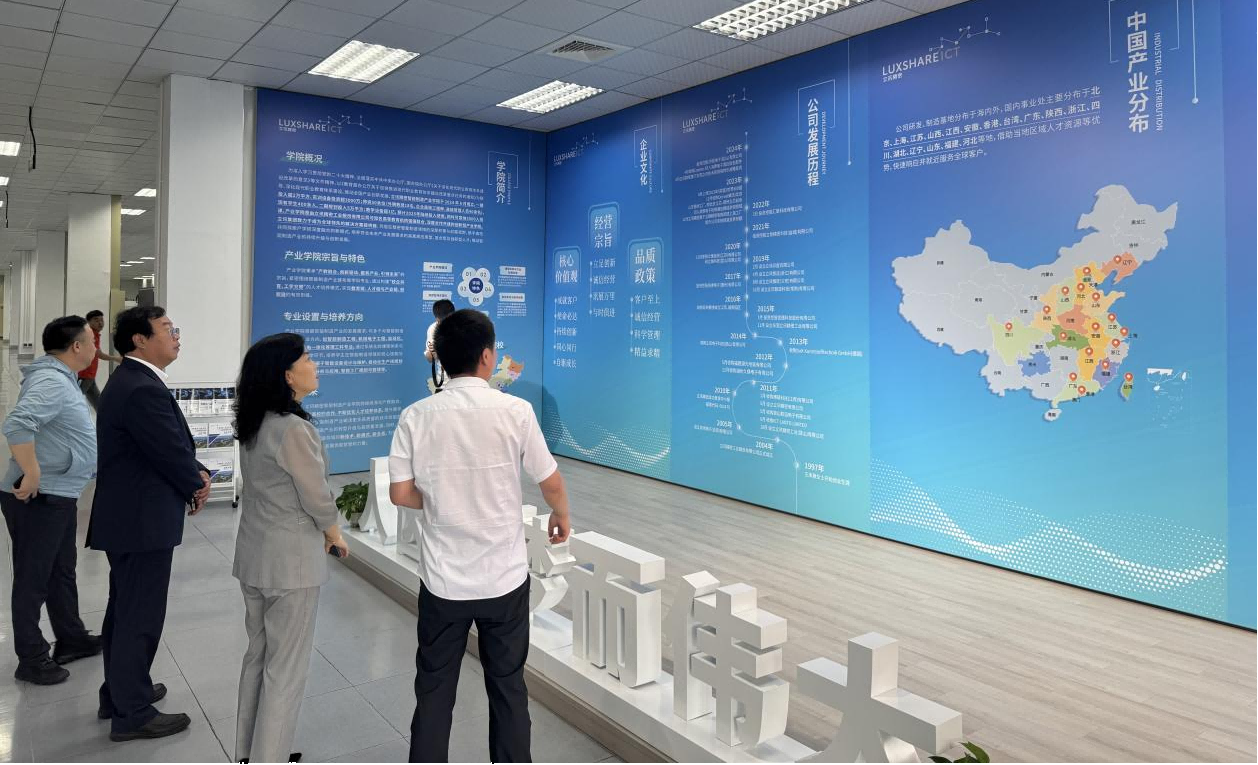 5月23日,公司党委书记张文基、经理赵涓涓带队前往立讯精密工业股份有限公司开展校企走访调研以及合作洽谈。先进制造业和节能减排专家王俊斌、立讯精密集团通信事业部总经理薛海皋、校企合作主管汪宝峰、智能制造产业公司主管陈强出席本次座谈会。双方针对创新型人才培养模式构建、科研联合攻关机制、实习就业资源对接等核心议题展开深入探讨,并初步达成共建产教融合实践基地的合作意向。