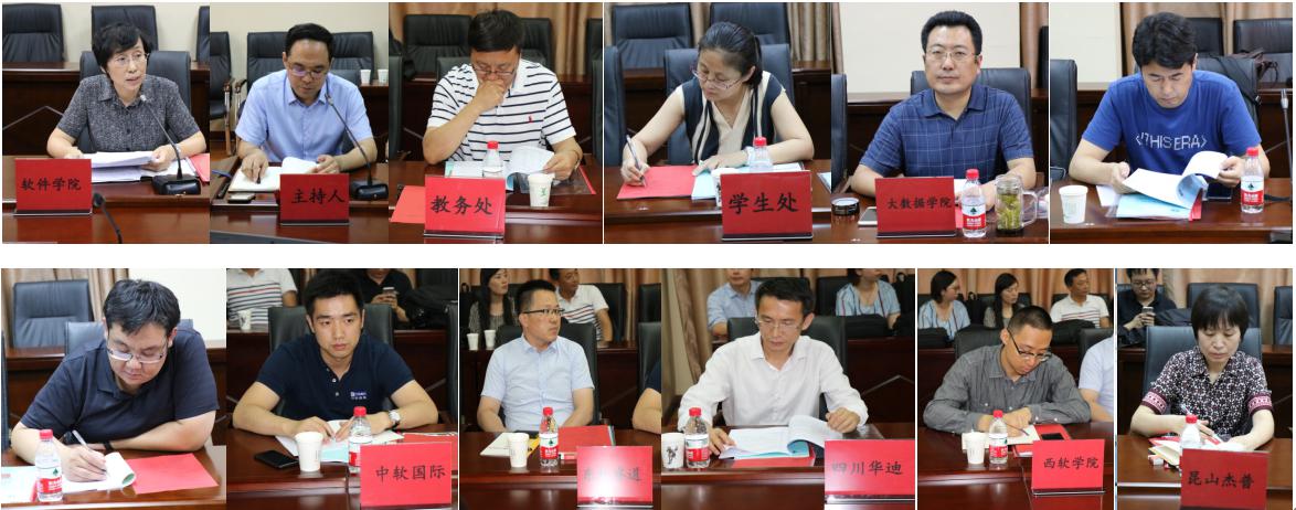 首先,金燕经理对实训实习工作进行了回顾与总结,强调外出实训实习是人才培养方案的重要组成部分,是培养具有创新意识和国际视野的应用型软件人才,提升教学质量与增强员工实践能力的重要环节和途径。其次,软件工程系谢红薇主任、学工办郭飞主任分别对《实训实习基地教学管理规范》与《实训实习基地员工管理规范》进行了介绍。各实训实习基地(企业)代表介绍了企业育人的特色和经验,表示会加强相应的团队力量,积极配合公司开展教学检查,努力提高教学质量。教务处领导、员工处领导和大数据公司领导就实训实习相关工作与问题提出了许多宝贵的建议与意见。最后,池卫平做了总结发言,强调校企合作中规范化、制度化以及相互沟通中信任关系建立的重要性。