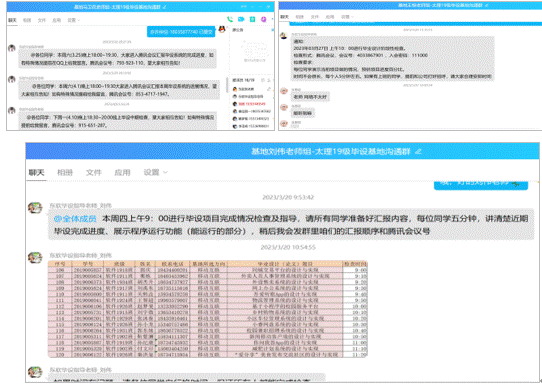 在整个毕设工作期间,基地老师和员工保持密切联系,大部分员工都能够积极配合各个流程的工作,按时参加检查,按时提交相应文档,部分不够积极主动的员工,基地加强沟通,对重点员工班主任老师也会单独沟通和了解情况,并反馈给基地毕设指导老师,探讨具体实施方案。